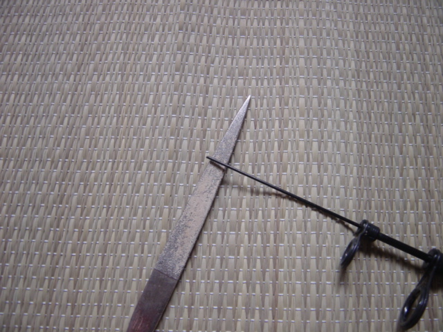↓ガイド径よりロッド先端が太いのでヤスリで削り適正なハマリ具合に微調整します。